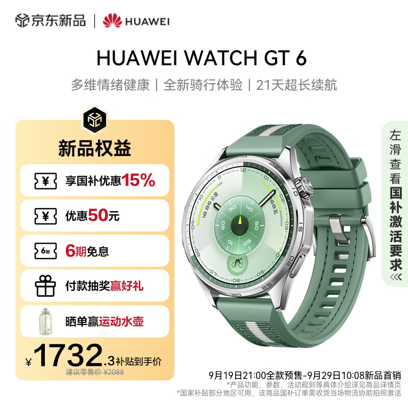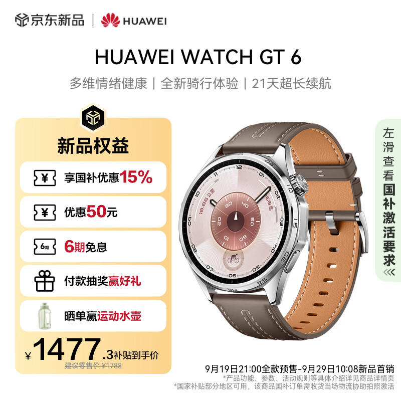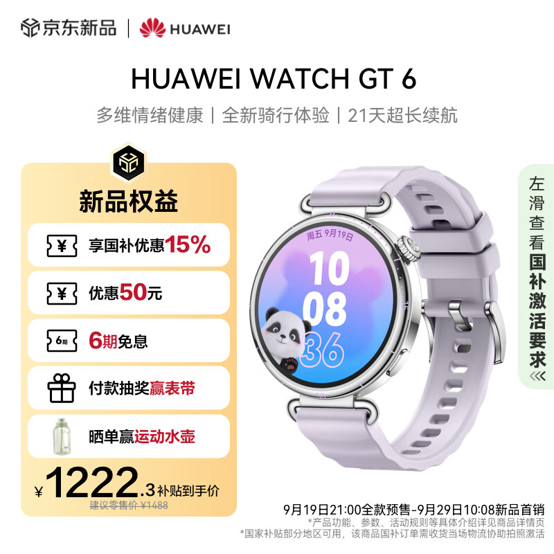 华为 WATCH GT 6 智高腕证实已开启预售葡萄京娱乐网站app官网,撑合手 15% 政府补贴: